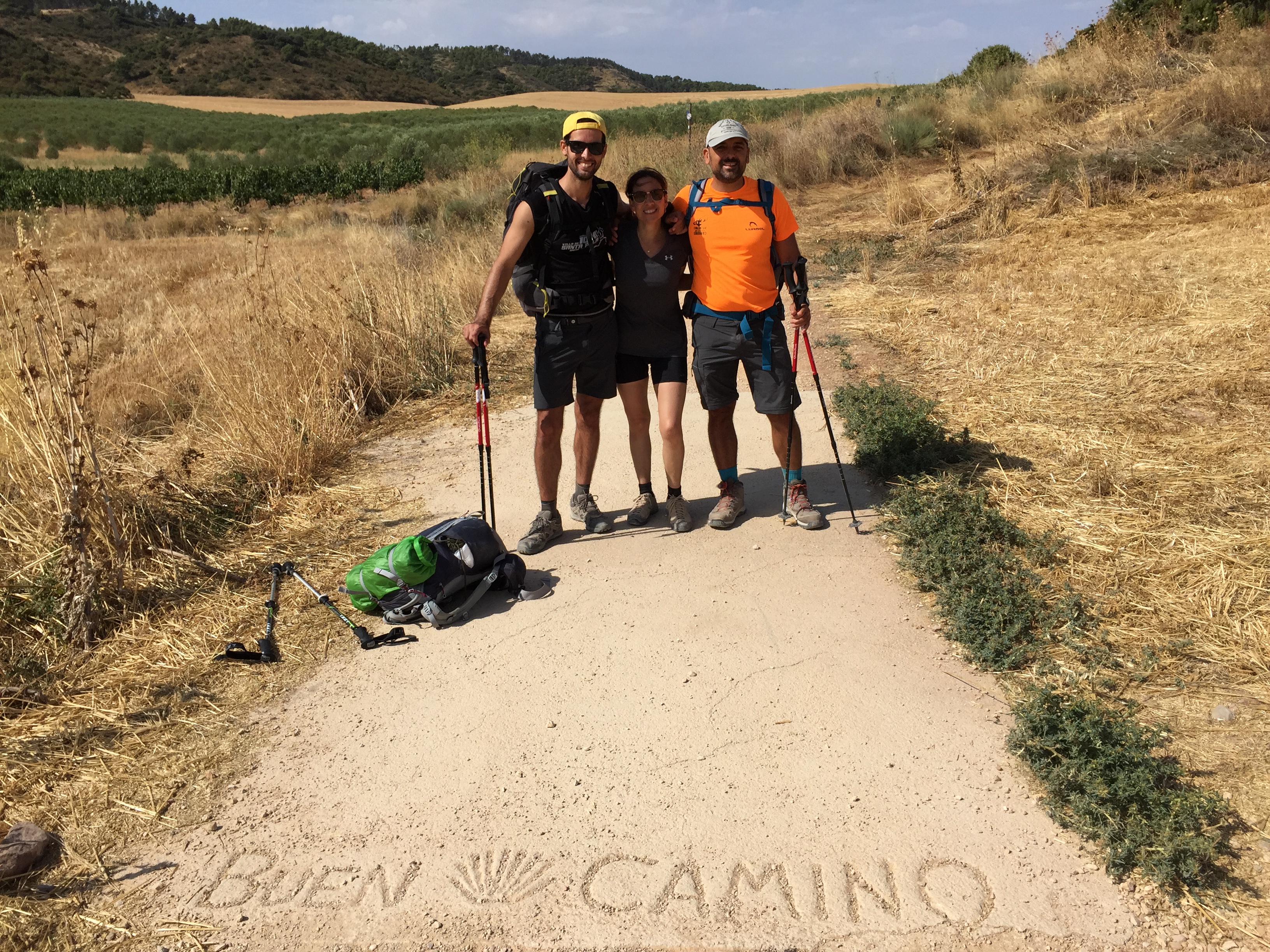 En ese stop nos topamos ahi a otra brasileña que Rubia ya había conocido días atrás. Ella se iba a quedar en Santo Domingo pero al final se animo a venir con nosotros al otro pueblo. Seguimos caminando y entre tanta platica SE NOS PERDIO EL CAMINO! Dejamos de poner atencion en las flechas y valimos madre. Llegamos a una carretera y no sabíamos por donde caminar por que no tenia acotamiento. En el campo ya no había camino trazado, y bueno caminamos un poco entre la hierba hasta que dimos un poco de rodeo y nos volvimos a incorporar. El calor espantoso. Eran como las 2:00pm y el sol a todo…Mis brazos terminaron de carbonizarse ahi….cuando me vean no sabran que alguna ves fui morena por que ahora estoy chocolate.