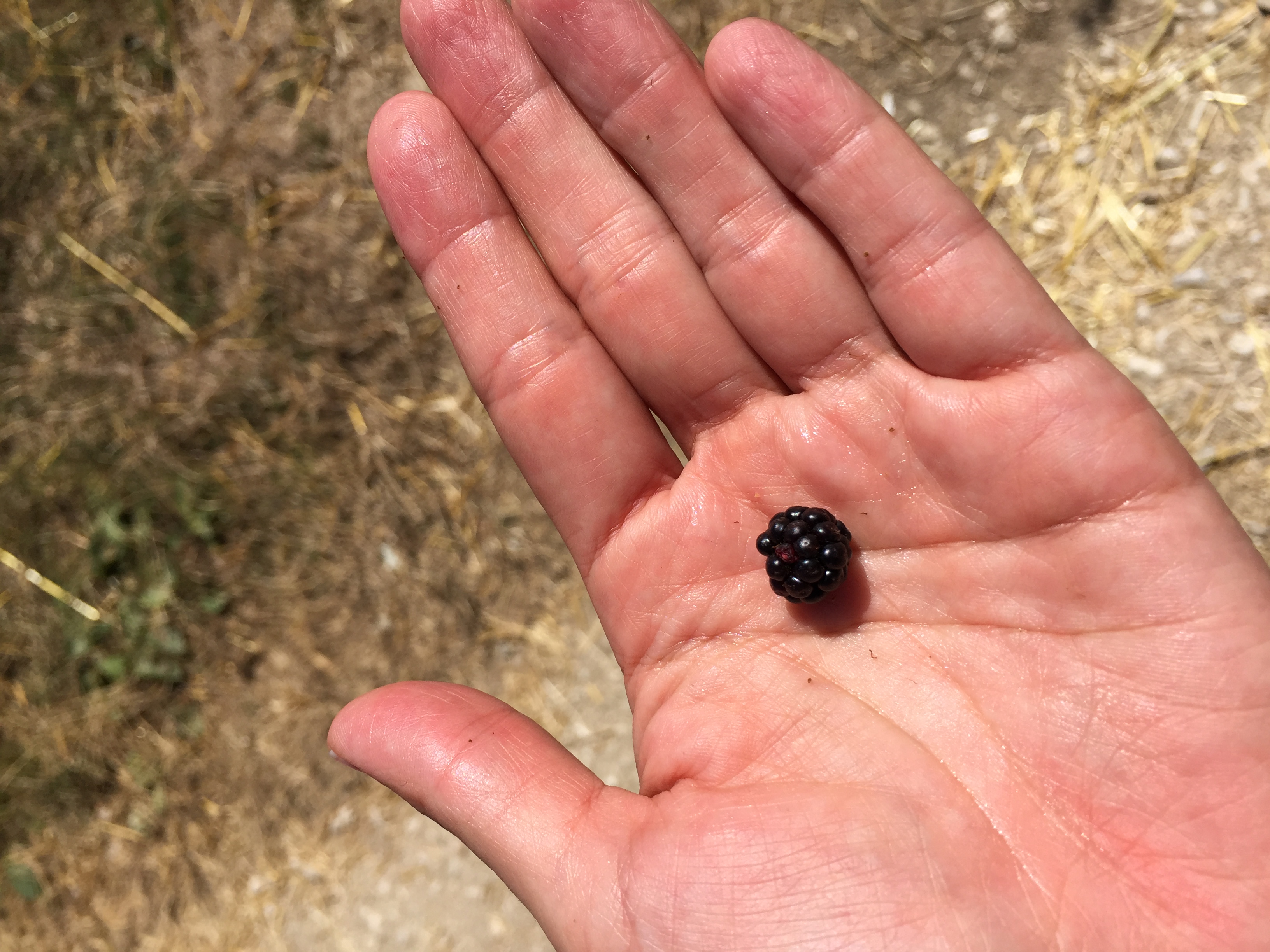 Despues de este stop la caminata se volvio un poco mas pesada. Me volvi a parar nuevamente para desayunar y ahi se pego un italiano. Estuvimos caminando juntos un buen rato. Pasamos por plantas de moras salvajes yo no las habia visto pero el se paro y me empezo a cortar para que comiera: