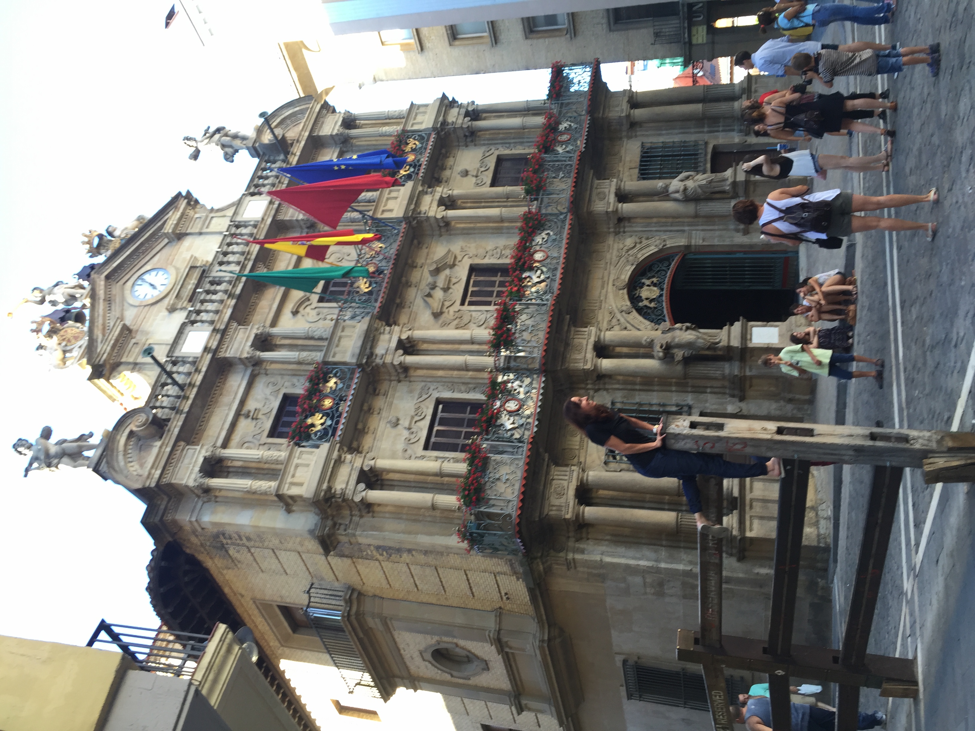 Esta es una foto del Ayuntamiento y la calle por donde sueltan a los toros en la Pamplonada. Me subi a la valla que sirve de guia o sea por donde pasan. Y luego la otra es el santo de esta fiesta patronal…. 7 de Julio, San Fermin.