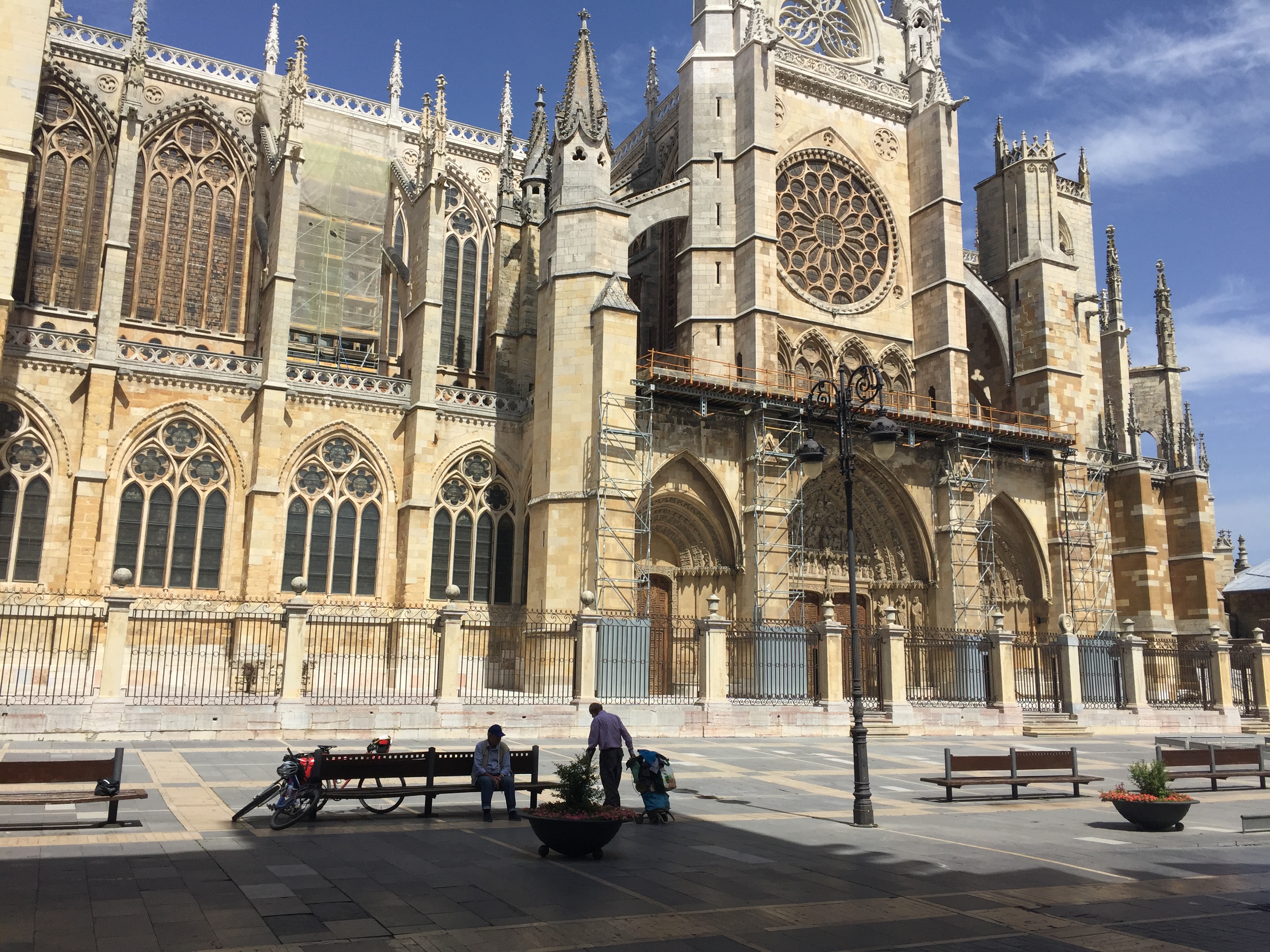 A lo lejos podíamos ver los picos de la catedral. A esas alturas como íbamos muy aprisa, ya ni pusimos atención a las flechas, nos íbamos guiando por los picos de la iglesia y preguntando las direcciones a la gente de cómo llegar. Hasta que llegamos a La catedral de Santiago de Compostela. Buscamos la consigna donde cuidan las mochilas porque a partir de los atentados y la inseguridad en Europa, ya no dejan entrar con mochilas como medidas de precaución.